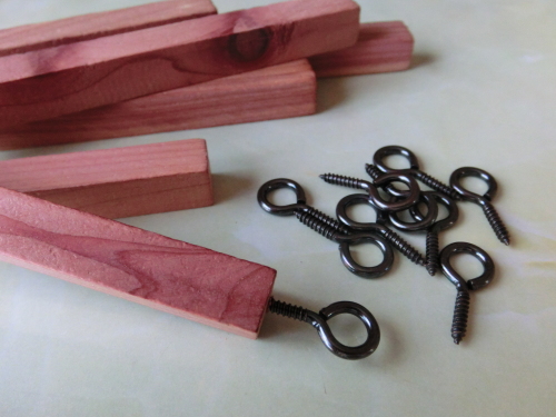 レッドシダーブロックの先端にネジをつけて、紐を通し、ハンガーにかけている人も多いです。