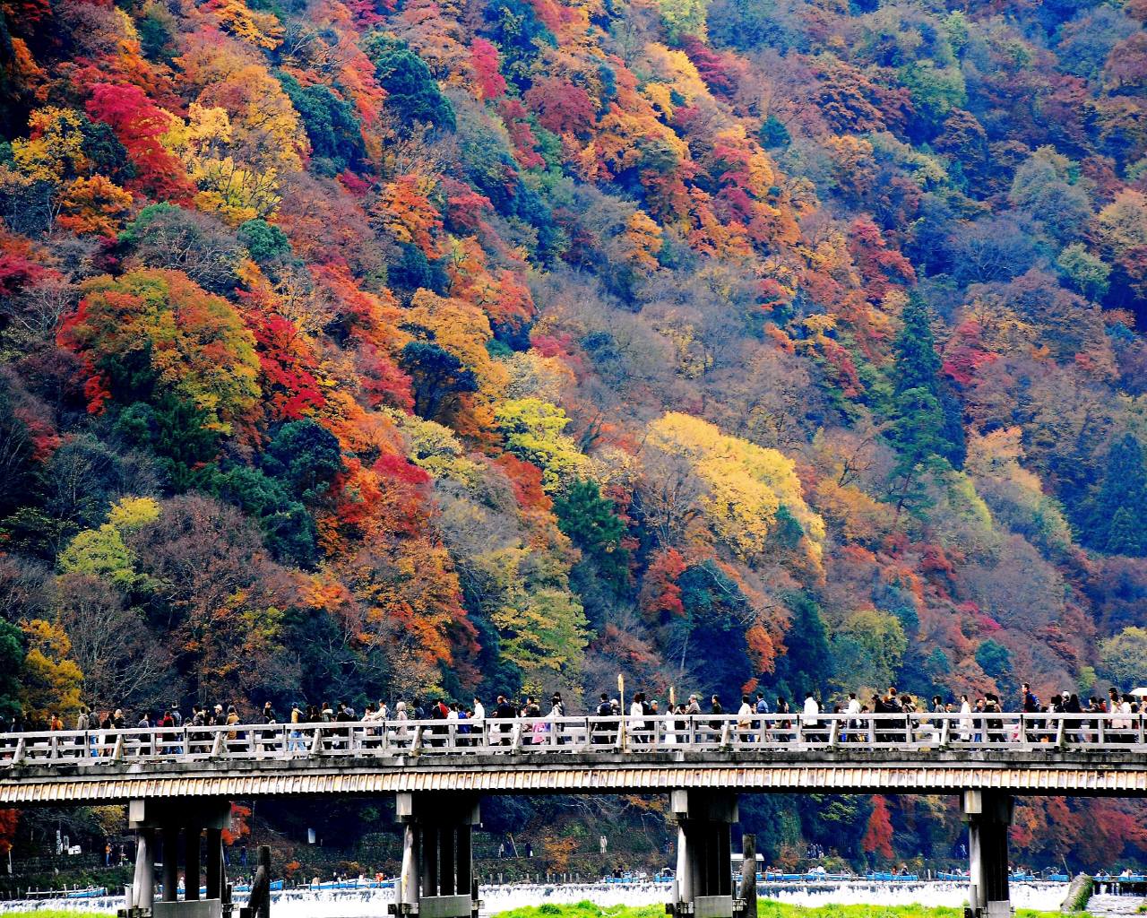 桜と紅葉の名所で知られる嵐山の渡月橋。