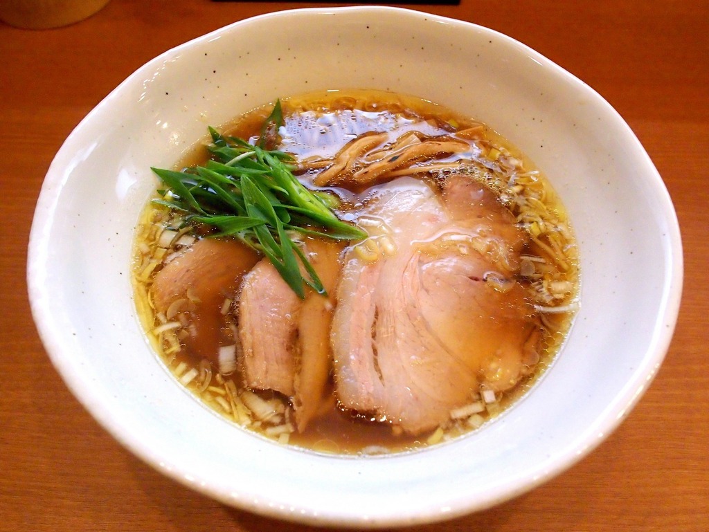看板メニューは、濃厚な鶏白湯スープを使った「鶏煮込みそば」ですが、数量限定の和風醤油ラーメンも隠れた名物です!鶏をベースに、魚介出汁がきいた醤油味のスープは、非常にすっきりとした味わいで、奇をてらわない正統派です。大ぶりのチャーシューや海苔、なると、ねぎなどトッピングも定番そろいです。