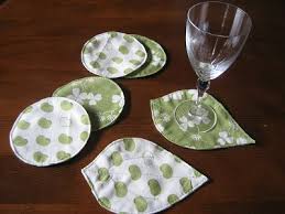 手ぬぐいの記事は、グラスに滴る水滴の吸収力も抜群。コースターにも向いています。正方形でも素敵ですが、写真のように丸型やリーフ型にもチャレンジしてみてください。裏表で生地を変えると二倍楽しくなりますよ!